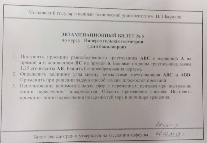 Для студентов МГТУ им. Н.Э.Баумана по предмету Начертательная геометрияЭкзаменационные билетыЭкзаменационные билеты