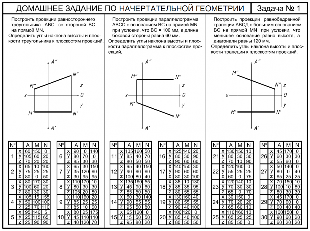 Домашние задания по курсу "Начертательная геометрия" (для всех факультетов, кроме ИУ1, 2, 3, 5, 6, РК6, МТ9, БМТ1-13Б)