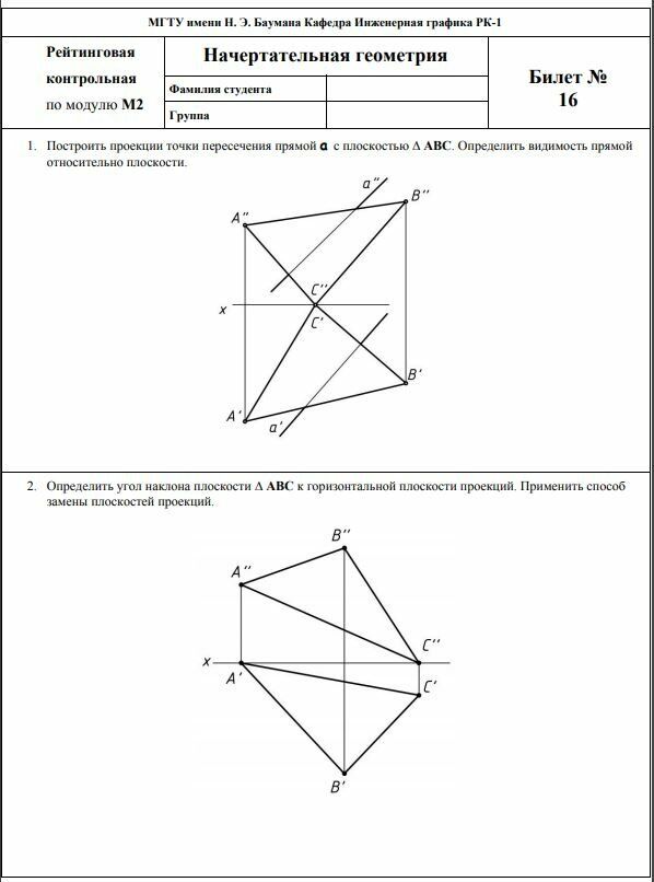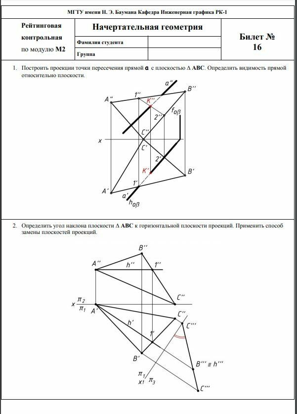 Для студентов МГТУ им. Н.Э.Баумана по предмету Начертательная геометрияРубежный контроль №2 (Вопросы для подготовки + решенный билет)Рубежный контроль №2 (Вопросы для подготовки + решенный билет) 2021-06-21СтудИзба