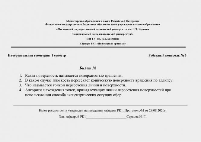 Для студентов МГТУ им. Н.Э.Баумана по предмету Начертательная геометрияРубежный контроль №3 (Вопросы для подготовки + решенный билет)Рубежный контроль №3 (Вопросы для подготовки + решенный билет) 2021-06-21СтудИзба
