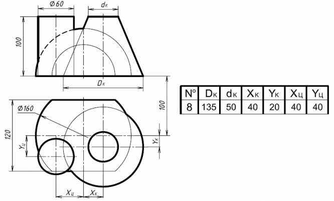 • Задача 4. Построить проекции линий пересечения заданных поверхностей.