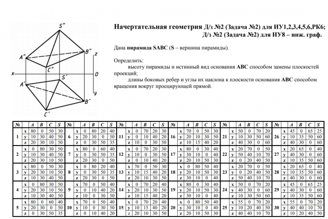 Начертательная геометрия Д/з №2 (Задача №2) для ИУ1,2,3,4,5,6,РК6