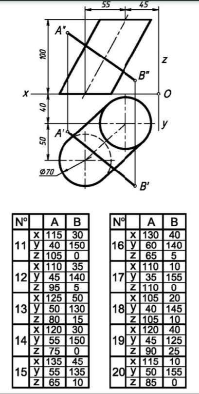 Построить проекции точек пересечения прямой АВ с заданными поверхностям (на форммате А3, масштаб 1:1)