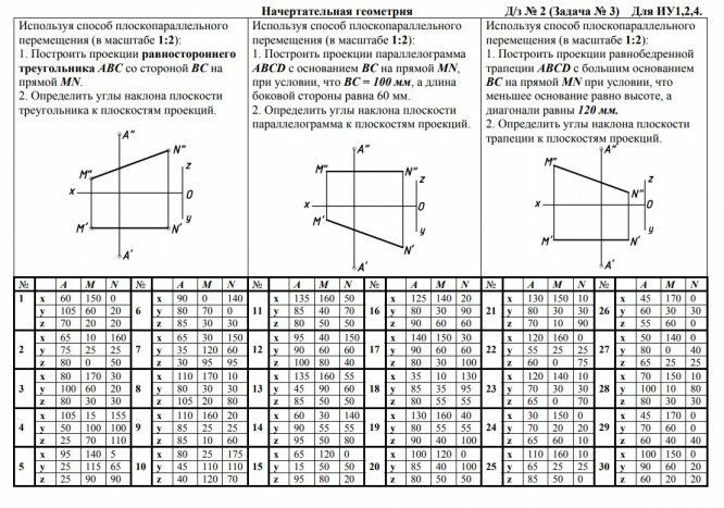Домашнее задание № 2 Задача № 3 по курсу "Начертательная геометрия" для ИУ1, 2, 4