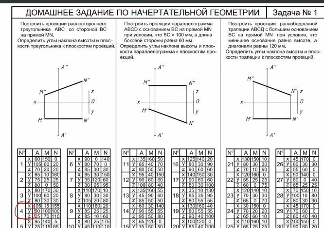 Домашнее задание по Начертательной геометрии (для всех факультетов, кроме ИУ1, 2, 3, 5, 6, РК6, МТ9)