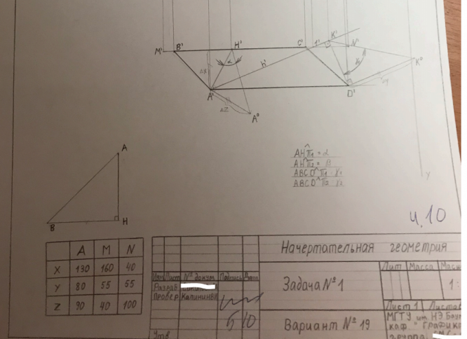 Для студентов МГТУ им. Н.Э.Баумана по предмету Начертательная геометрияЗадача 1Задача 1