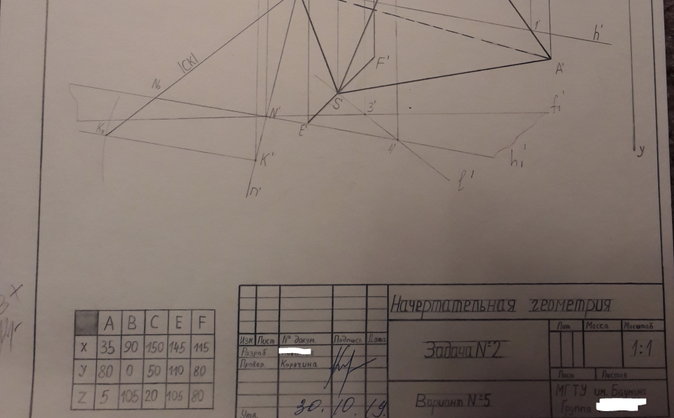 Для студентов МГТУ им. Н.Э.Баумана по предмету Начертательная геометрияЗадача 2Задача 2