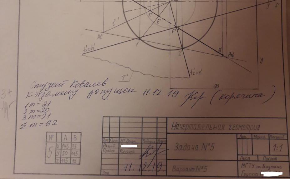 Для студентов МГТУ им. Н.Э.Баумана по предмету Начертательная геометрияЗадача 5Задача 5