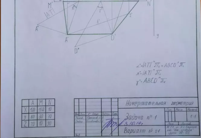 Для студентов МГТУ им. Н.Э.Баумана по предмету Начертательная геометрияЗадача 1Задача 1