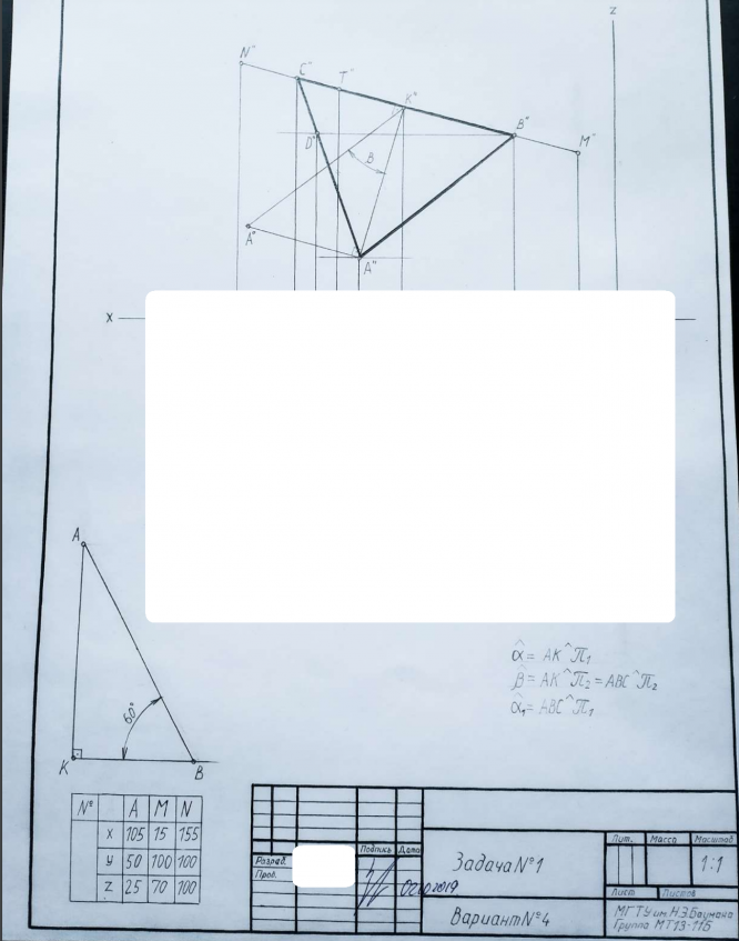 Для студентов МГТУ им. Н.Э.Баумана по предмету Начертательная геометрияЗадача 1Задача 1