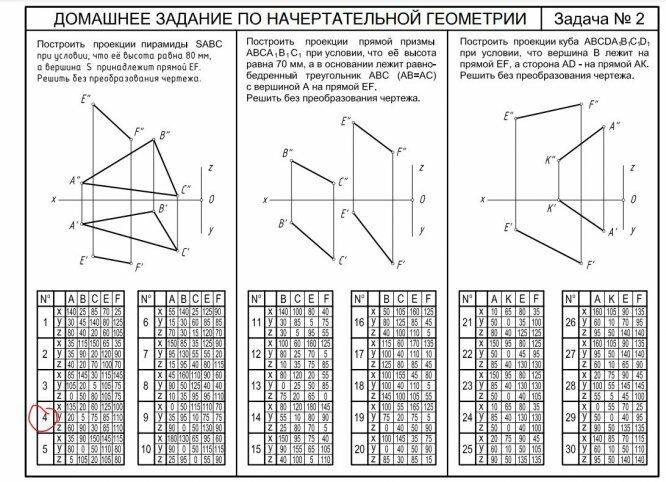 Домашнее задание по Начертательной геометрии (для всех факультетов, кроме ИУ1, 2, 3, 5, 6, РК6, МТ9)
