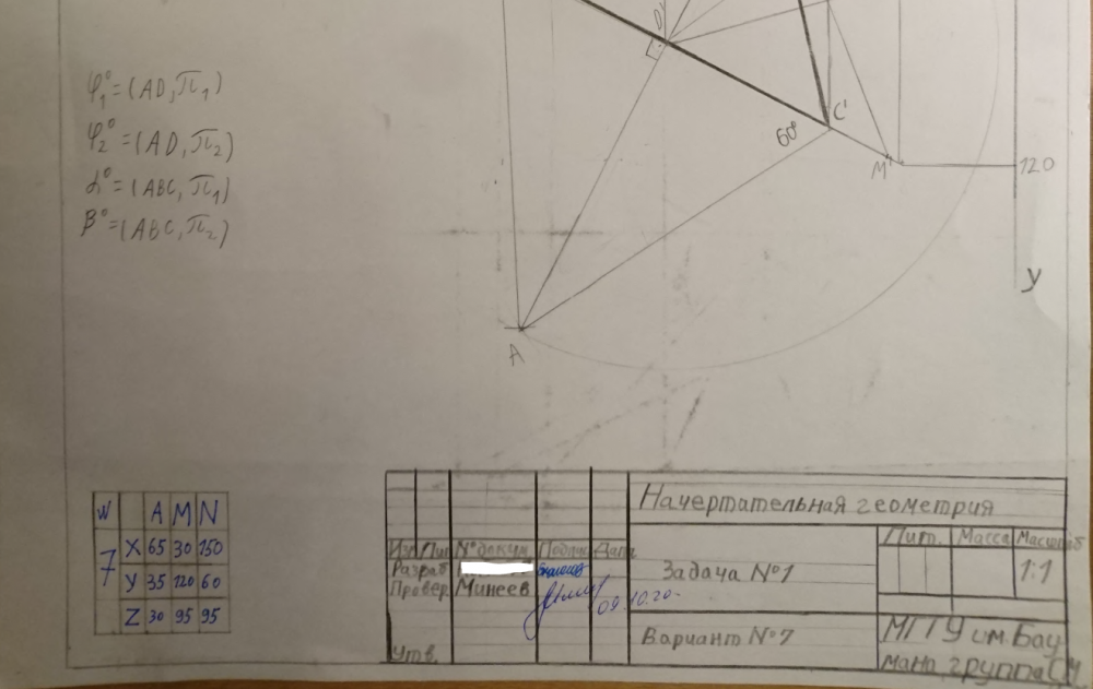 Для студентов МГТУ им. Н.Э.Баумана по предмету Начертательная геометрияЗадача 3Задача 3