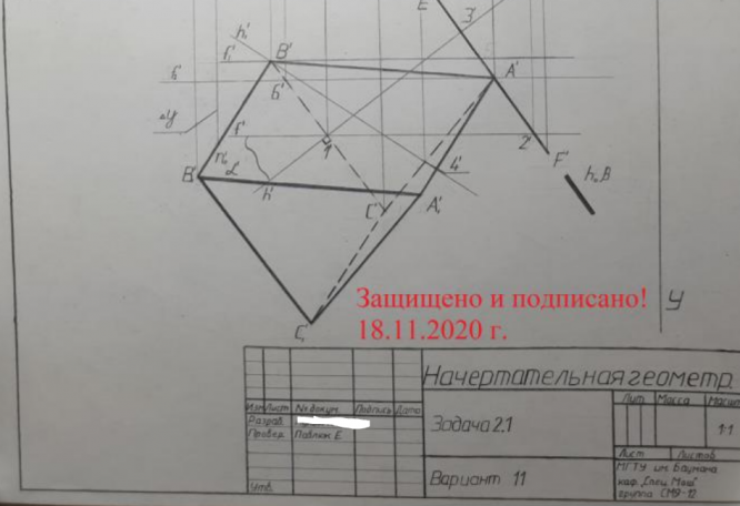 Для студентов МГТУ им. Н.Э.Баумана по предмету Начертательная геометрияЗадача 2Задача 2