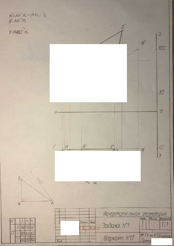 Для студентов МГТУ им. Н.Э.Баумана по предмету Начертательная геометрияЗадача 1Задача 1