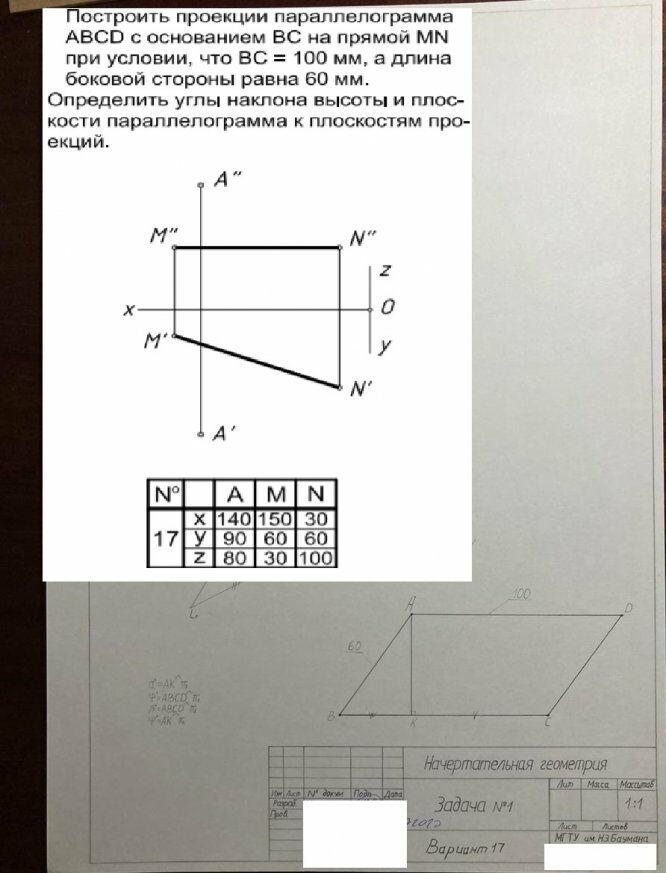 Для студентов МГТУ им. Н.Э.Баумана по предмету Начертательная геометрияЗадача 1Задача 1