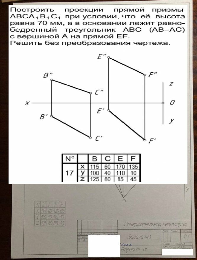 Для студентов МГТУ им. Н.Э.Баумана по предмету Начертательная геометрияЗадача 2Задача 2