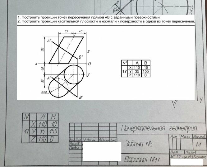 Для студентов МГТУ им. Н.Э.Баумана по предмету Начертательная геометрияЗадача 5Задача 5