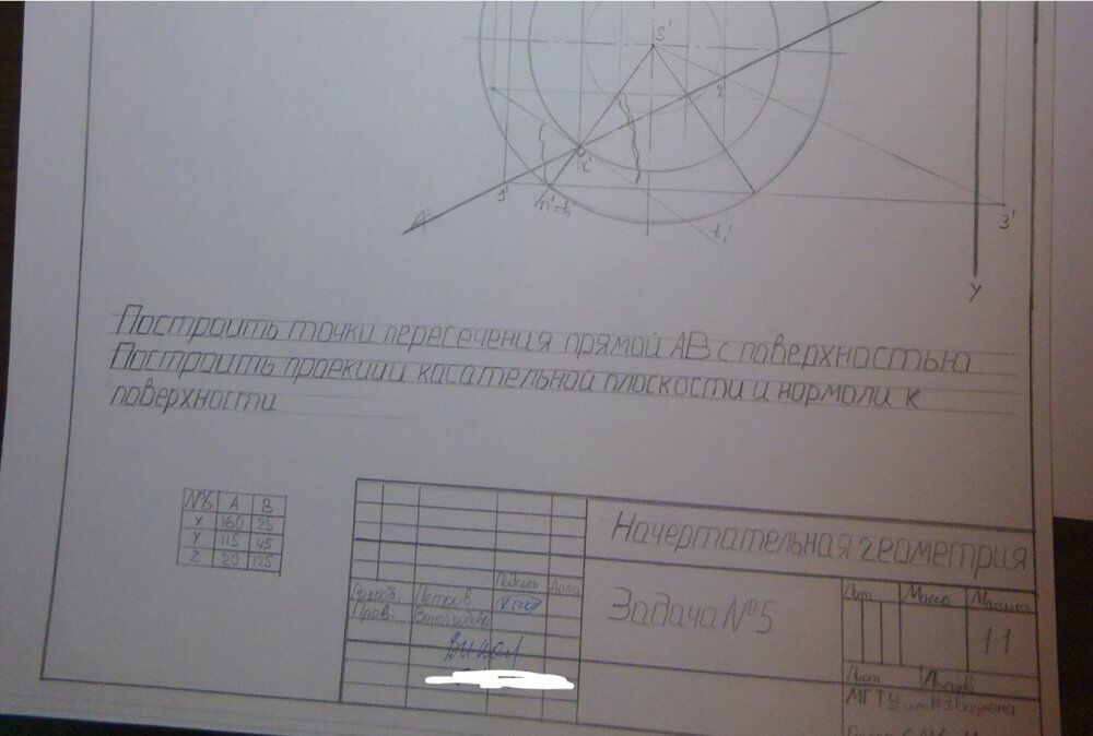 Для студентов МГТУ им. Н.Э.Баумана по предмету Начертательная геометрияЗадача 5Задача 5