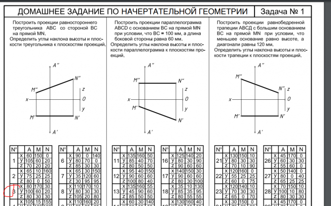 Домашнее задание по Начертательной геометрии (для всех факультетов, кроме ИУ1, 2, 3, 5, 6, РК6, МТ9)