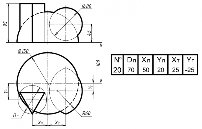• Задача 4. Построить проекции линий пересечения заданных поверхностей.