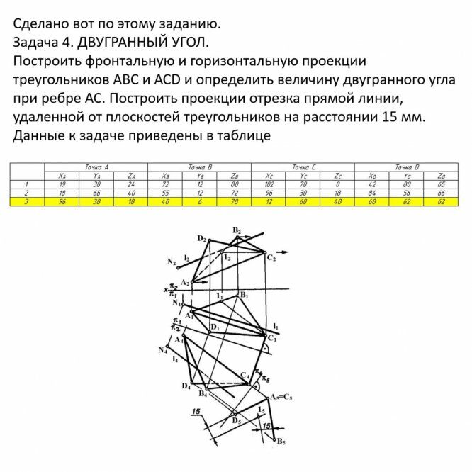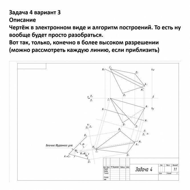 Для студентов ДГТУ по предмету Начертательная геометрияЗадача 4. Вариант 3. Двугранный уголЗадача 4. Вариант 3. Двугранный угол