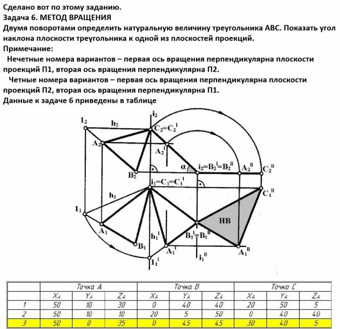 Для студентов ДГТУ по предмету Начертательная геометрияЗадача 6. Вариант 3. Метод вращенияЗадача 6. Вариант 3. Метод вращения