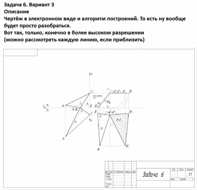 Начертательная геометрия. Задача 6. Вариант 3. Метод вращения
