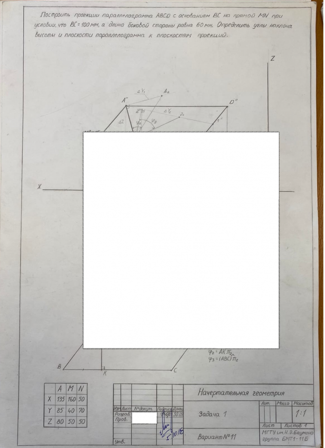 Для студентов МГТУ им. Н.Э.Баумана по предмету Начертательная геометрияЗадача 1Задача 1