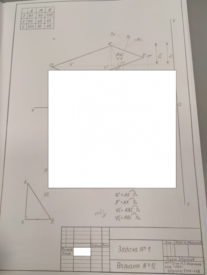 Для студентов МГТУ им. Н.Э.Баумана по предмету Начертательная геометрияЗадача 1Задача 1