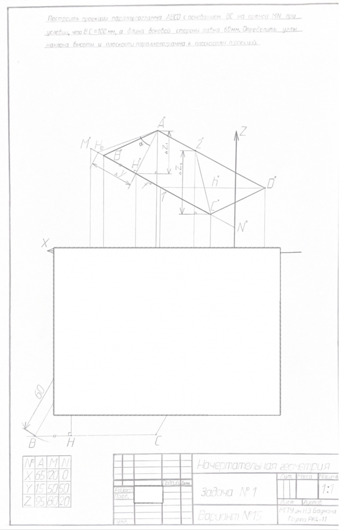 Для студентов МГТУ им. Н.Э.Баумана по предмету Начертательная геометрияЗадача 1Задача 1