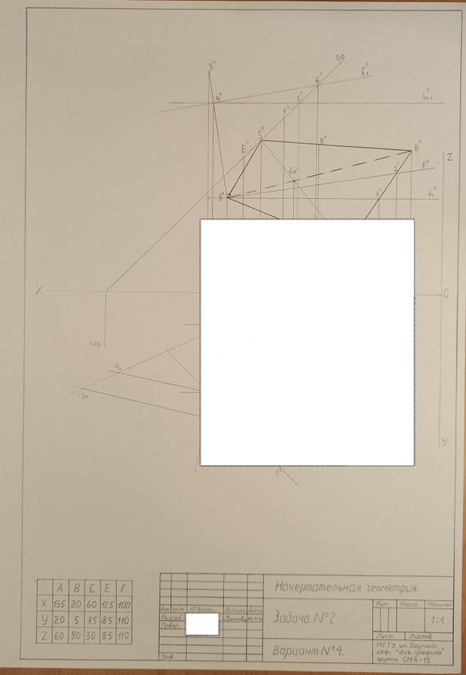 Для студентов МГТУ им. Н.Э.Баумана по предмету Начертательная геометрияЗадача 2Задача 2