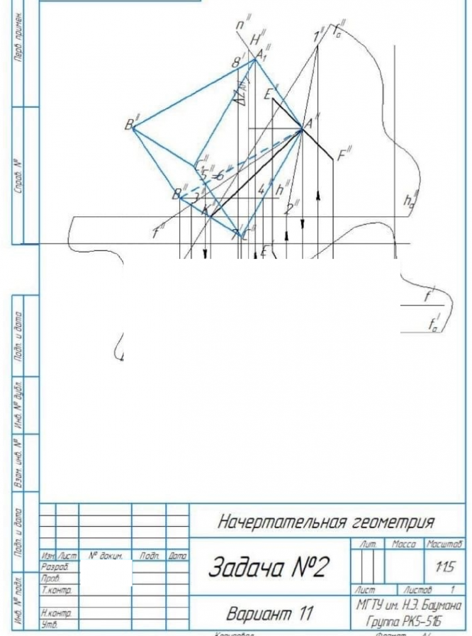 Для студентов МГТУ им. Н.Э.Баумана по предмету Начертательная геометрияЗадача 2Задача 2