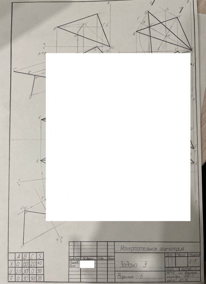 Домашнее задание по Начертательной геометрии (для всех факультетов, кроме ИУ1, 2, 3, 5, 6, РК6, МТ9)