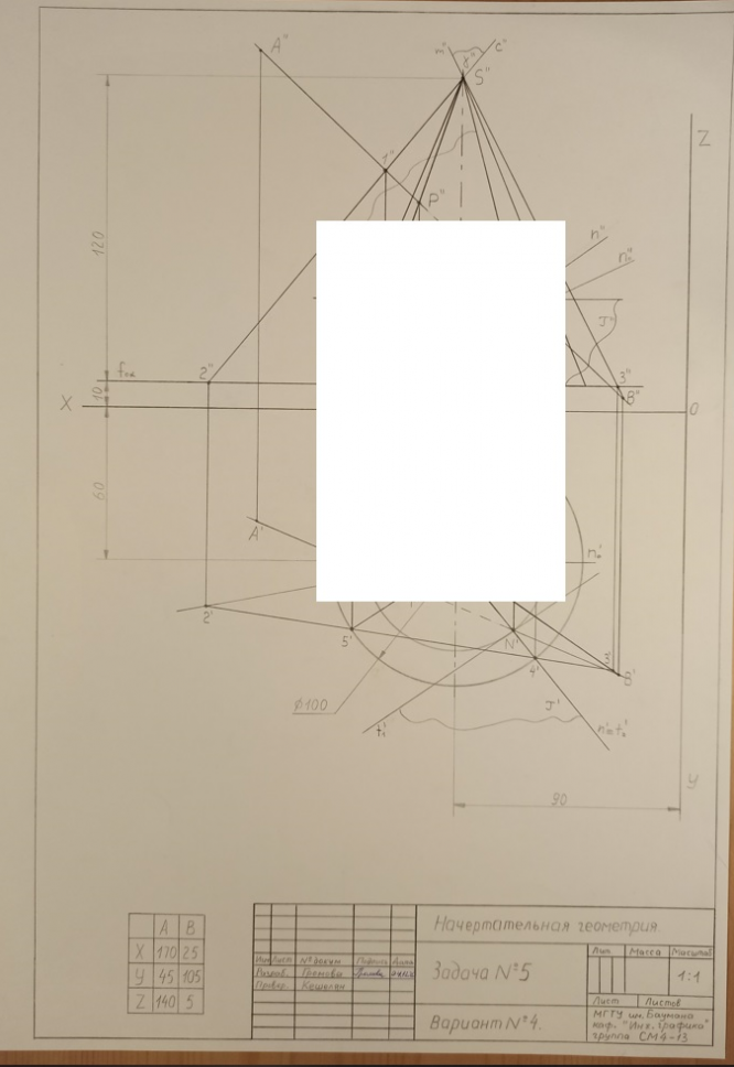 Для студентов МГТУ им. Н.Э.Баумана по предмету Начертательная геометрияЗадача 5Задача 5