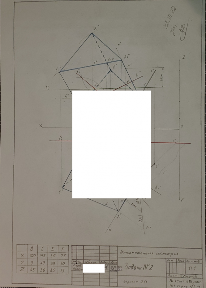 Для студентов МГТУ им. Н.Э.Баумана по предмету Начертательная геометрияЗадача 2Задача 2