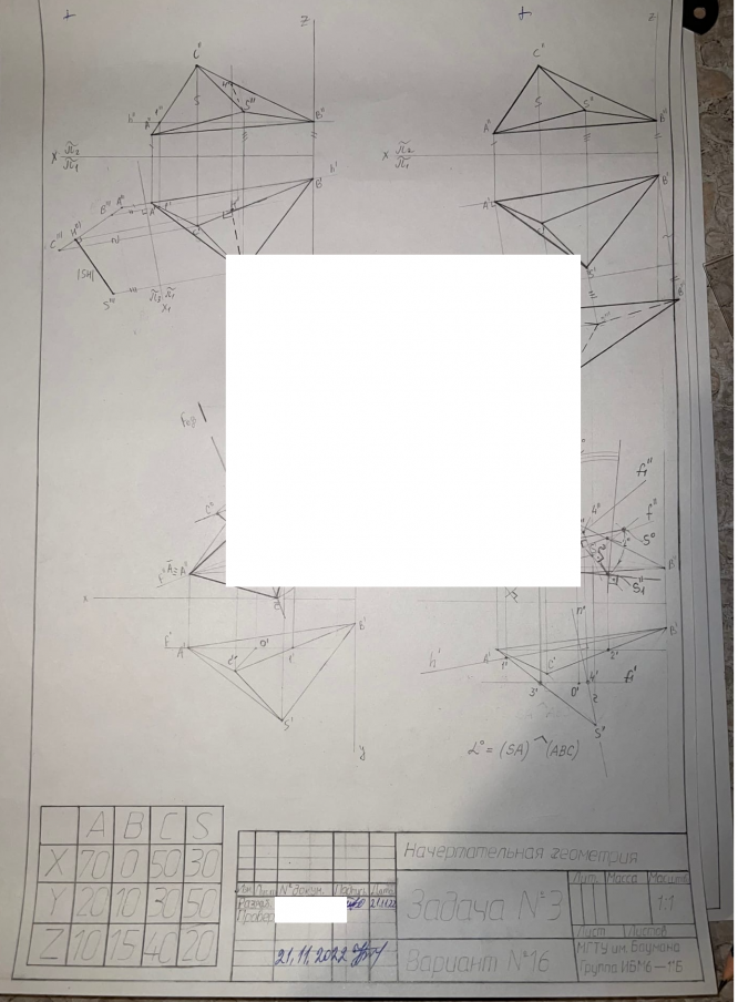 Для студентов МГТУ им. Н.Э.Баумана по предмету Начертательная геометрияЗадача 3Задача 3