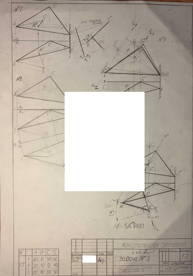 Для студентов МГТУ им. Н.Э.Баумана по предмету Начертательная геометрияЗадача 3Задача 3