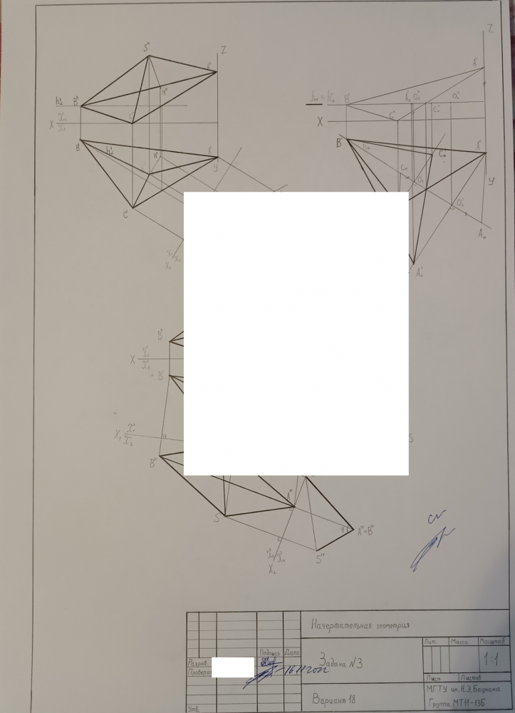 Домашнее задание по Начертательной геометрии (для всех факультетов, кроме ИУ1, 2, 3, 5, 6, РК6, МТ9)