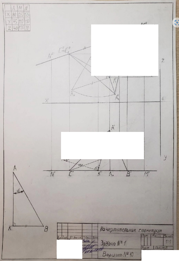 Типовой расчет по начертательной геометрии №1, 1 задача, зачтено