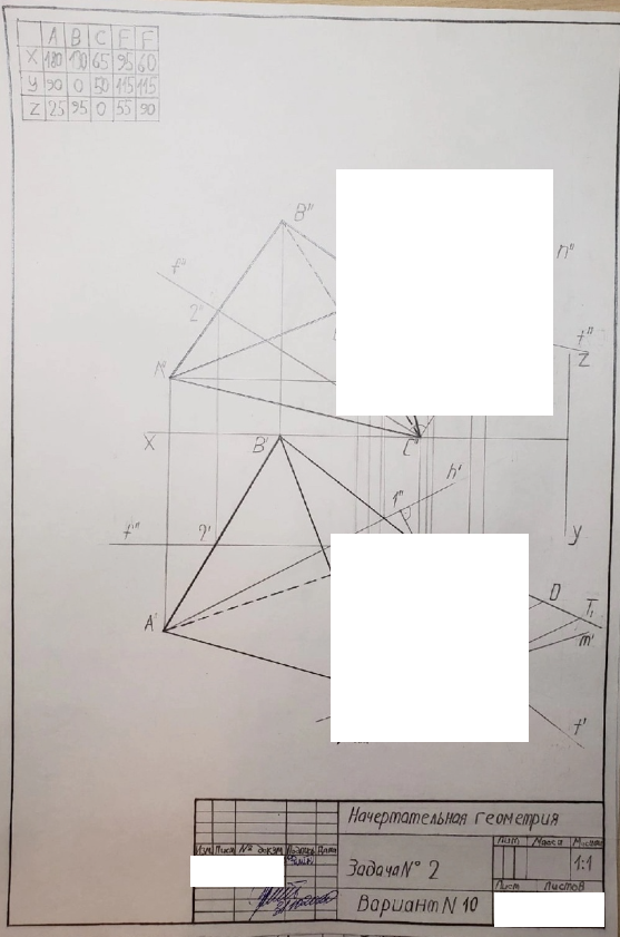 Типовой расчет по начертательной геометрии №2, 1 задача, зачтено