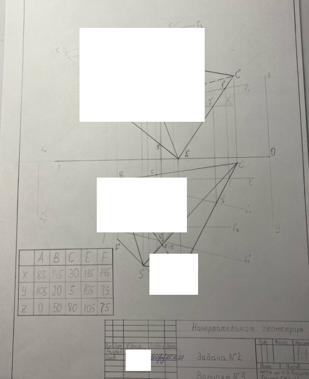 Типовой расчет по начертательной геометрии №2, зачтенная задача в отличном качестве