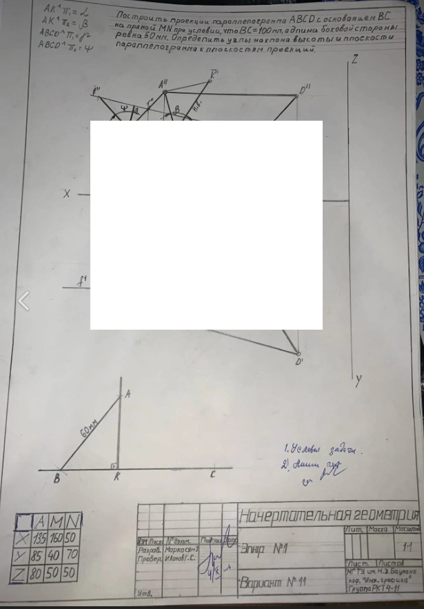 Для студентов МГТУ им. Н.Э.Баумана по предмету Начертательная геометрияЗадача 1Задача 1