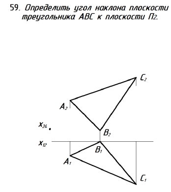 Задача 59: Определить угол наклона плоскости треугольника ABC к плоскости П2