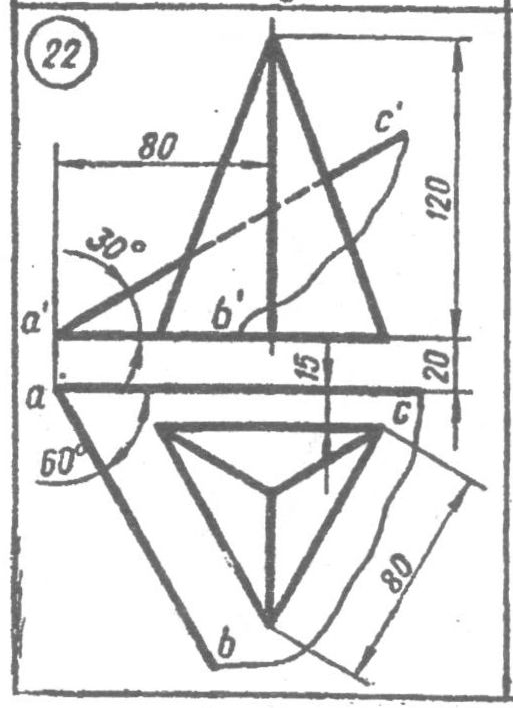Построить натуральный вид сечения пирамиды плоскостью и аксонометрическую проекцию