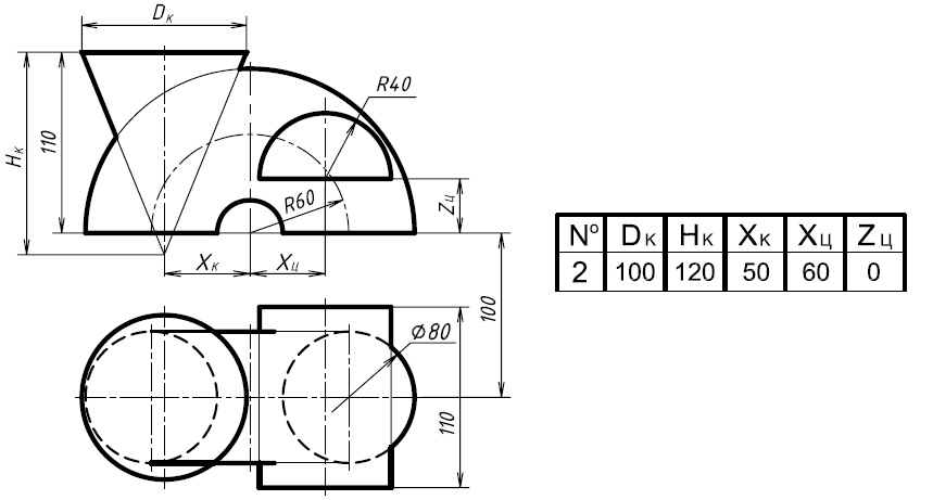 • Задача 4. Построить проекции линий пересечения заданных поверхностей.