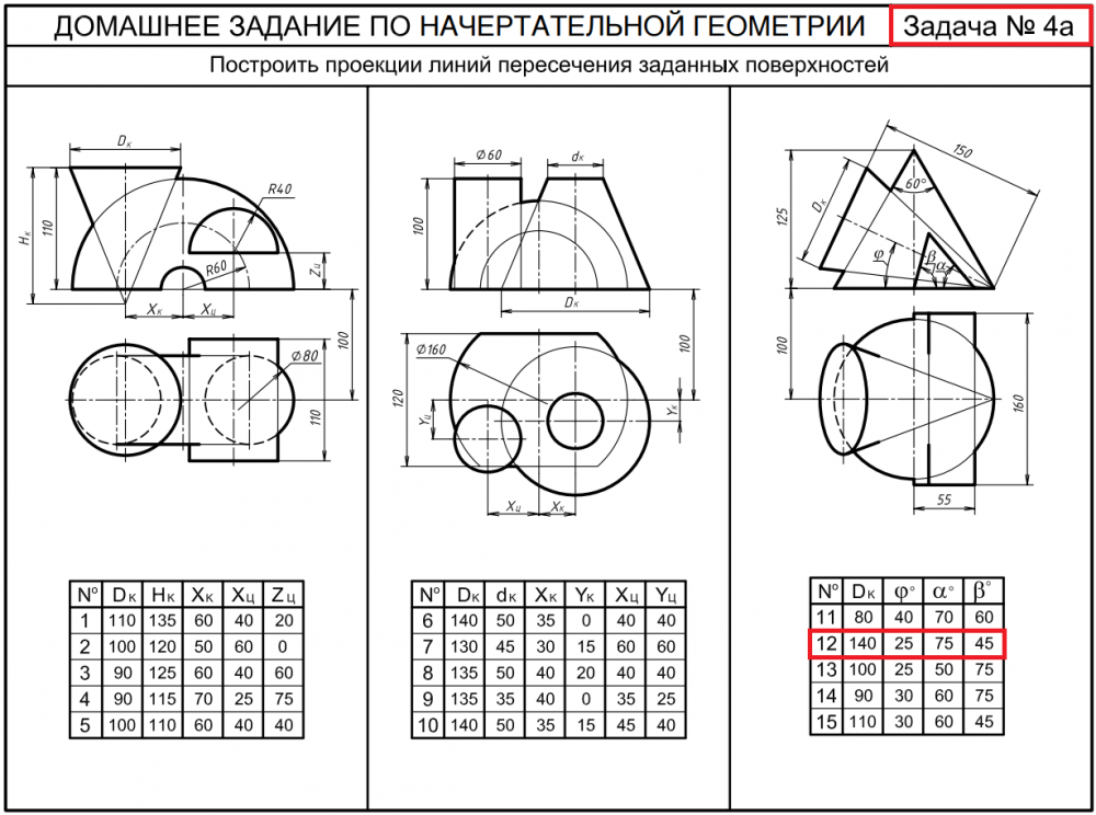 1. Задачи №4а: Построить проекции линий пересечения заданных поверхностей