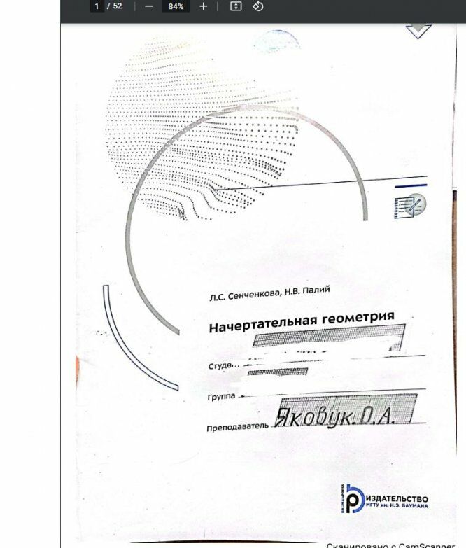 Для студентов МГТУ им. Н.Э.Баумана по предмету Начертательная геометрияРабочая тетрадьРабочая тетрадь