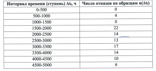 Необходимо определить вид отказа (классифицировать) по характеру проявления, по происхождению, по влиянию на режим работы (функционирования или параметрический) с приведением обоснования, определить вероятность безотказной работы, частоту и интенсивность отказов в функции от времени и построить соответствующие графики. Найти среднюю наработку образцов до первого отказа.