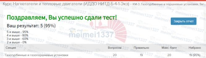 Ответы к заданиям КМ-3: Курс Нагнетатели и тепловые двигатели - КМ-3. Газотурбинные и поршневые установки. Тестирование