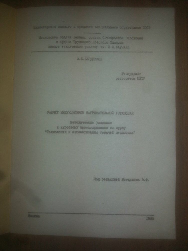 Для студентов МГТУ им. Н.Э.Баумана по предмету Нагрев и нагревательные устройства (НиНУ) (МТ-6)Э.Б. Бердников - Расчет индукционной нагревательной установкиЭ.Б. Бердников - Расчет индукционной нагревательной установки